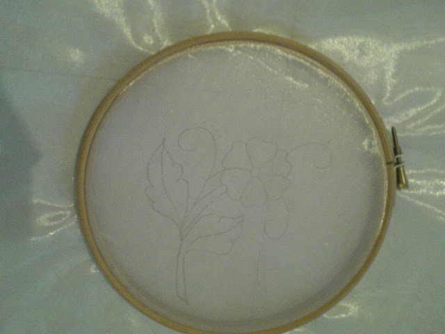 اولا نقوم بتتبيث الثوب في الاطار الخشبي و نرسم بواسطة قلم الرصاص او يمكن استعمال الكالك بحيث ننسخ الرشمة على الثوب